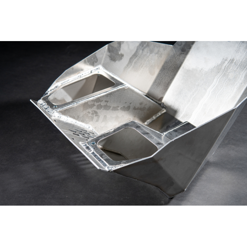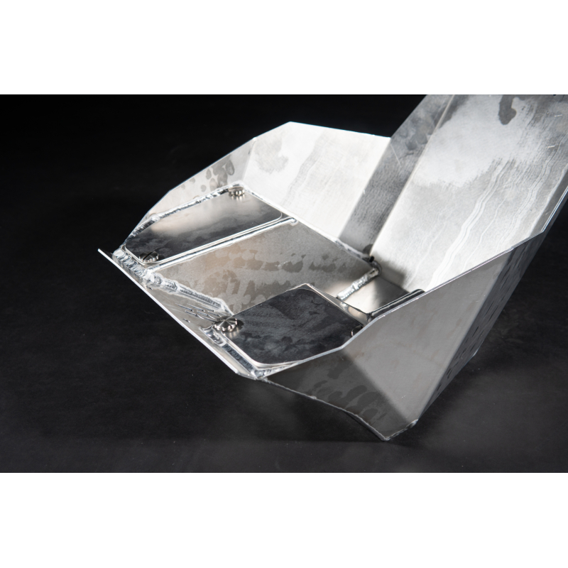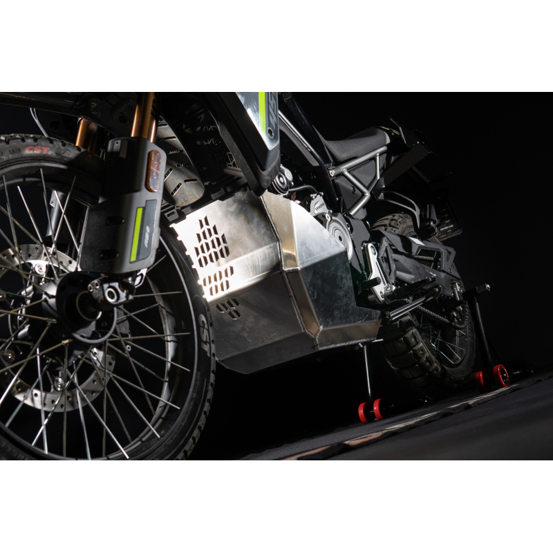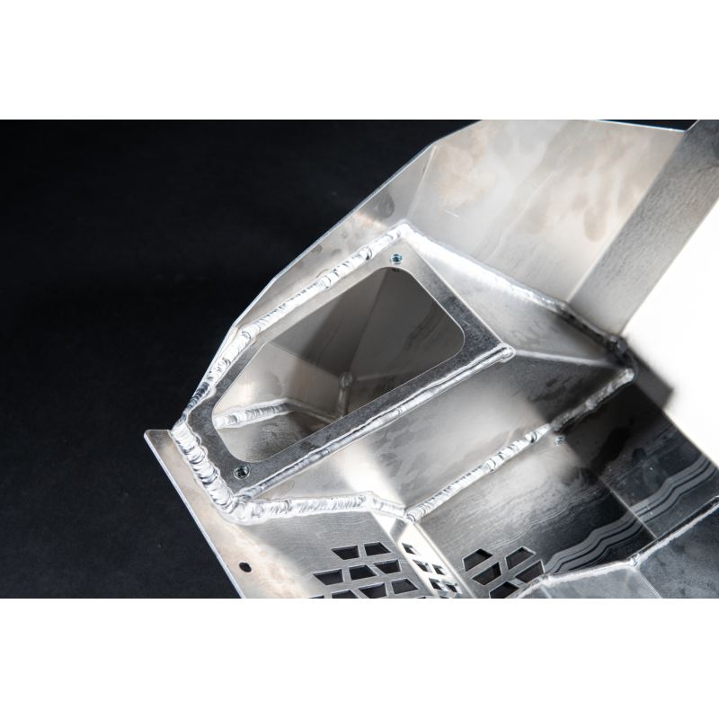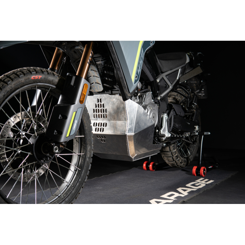 Ochranný kryt motora je vyrobený z 3 mm hrubého hliníka, čo je výrazné vylepšenie v porovnaní s pôvodným 1,5 mm hrubým materiálom. Náš dizajn poskytuje oveľa vyššiu úroveň ochrany pred poškodením motora, ale pridáva k vášmu motocyklu iba dva kilogramy navyše, čo predstavuje minimálny kompromis v prospech maximálnej bezpečnosti. Hmotnosť ochranného krytu motora s boxom na náradie je 4,2 kg.