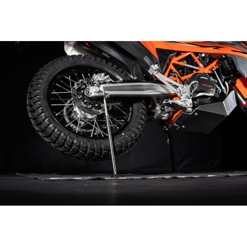 Univerzálny bočný stojan pre motocykle, ktorý je určený na zdvíhanie predného alebo zadného kolesa, čo uľahčuje zvládnutie úloh, ako je oprava defektu pneumatiky takmer kdekoľvek. Tento produkt sme vytvorili, pretože z prvej ruky vieme, aké náročné môže byť riešiť problémy na cestách bez správneho vybavenia. Preto sme vyvinuli inteligentné, kompaktné a jednoduché riešenie pre motocyklistov, ktoré vám zaručí, že budete pripravení na akúkoľvek neočakávanú situáciu.