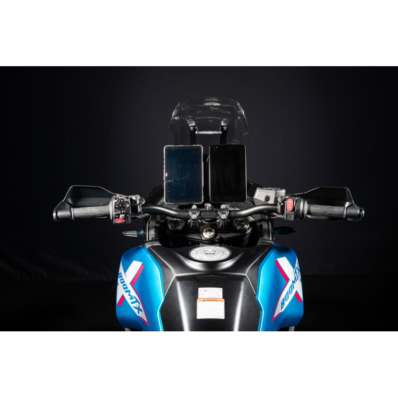 Prvou kľúčovou výhodou je výrazne rozšírený priestor pre navigáciu. Náš dizajn posúva pôvodný displej doprava, čím vytvára vyhradený vertikálny montážny priestor priamo vedľa neho. Vďaka tomu je navigačná jednotka umiestnená v prirodzenom zornom poli jazdca, čo jej umožňuje poskytovať dôležité informácie hneď vedľa hlavného displeja. Novovytvorený priestor pojme všetky štandardné navigačné zariadenia od značiek DMD, Carpe Iter, Garmin a ďalších. Vďaka montážnym otvorom podľa štandardu AMPS je toto nastavenie kompatibilné s prakticky akýmkoľvek držiakom navigácie na trhu.