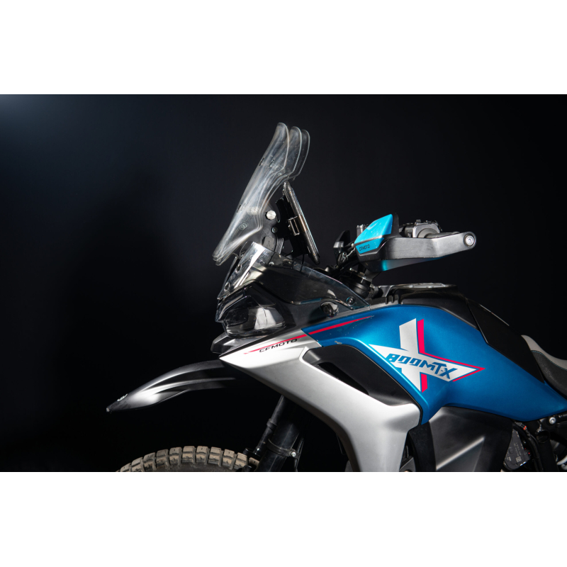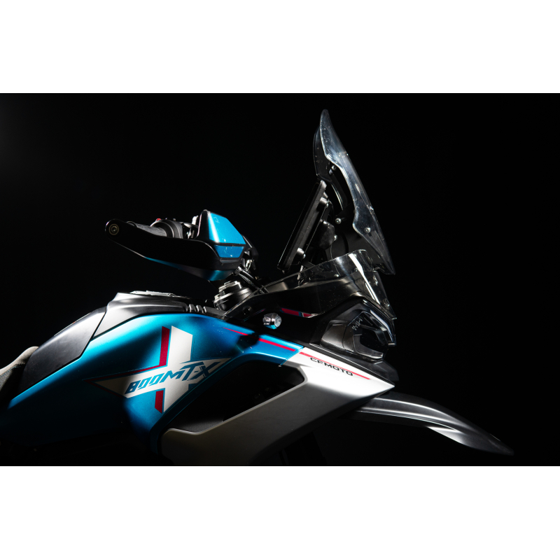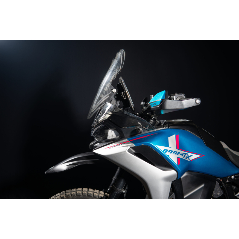 Sada na čelné sklo a navigáciu je kompaktná a ľahká veža navrhnutá ako náhrada za pôvodný držiak displeja CFMOTO 800 MT-X. Je precízne vyrobená z odolného, no zároveň ľahkého hliníka a poskytuje zvýšenú stabilitu bez zbytočného pridávania hmotnosti. Medzi kľúčové výhody patrí rozšírený priestor pre navigačné zariadenia a možnosť nastavenia výšky aj uhla sklonu čelného skla pre optimálnu viditeľnosť a pohodlie.