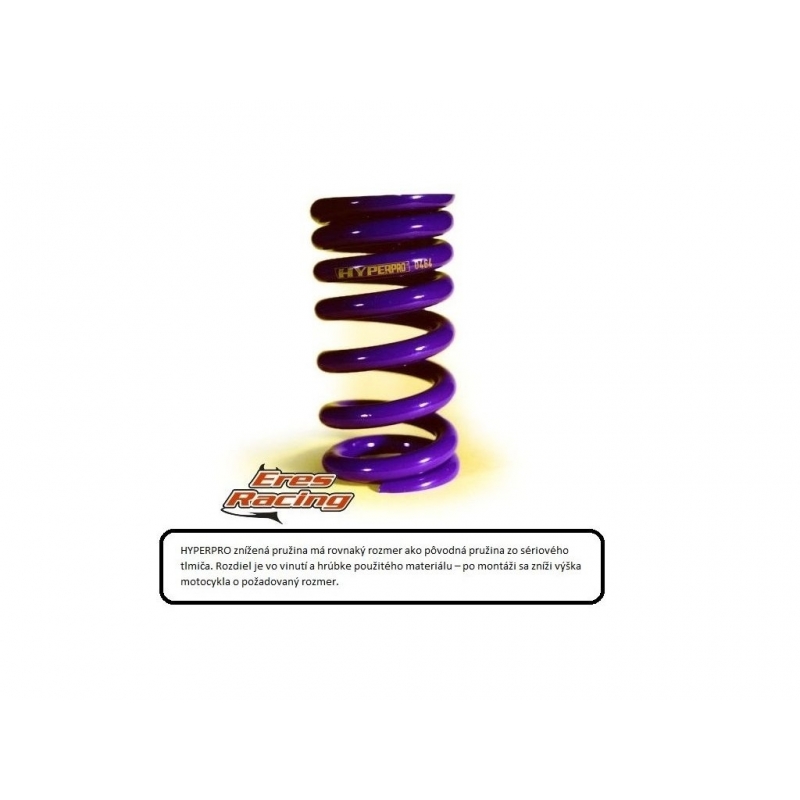 Balenie obsahuje : Predné znižovacie progresívne pružiny , 1 alebo viac litrov oleja s odporúčanou viskozitou, manuál k montáži ako aj k následnému nastaveniu tlmičov, tuk na semeringy pre montáž, nálepky.Hyperpro predné znižovacie pružiny KIT - Predné znížené progresívne pružiny majú rovnaký rozmer ako pôvodné zo sériových tlmičov. Rozdiel je vo vinutí a hrúbke použitého materiálu - po montáži sa predok motocykla zníži o požadovaný rozmer. pre zachovanie vlastností podvozka je ale potrebné znížiť aj zadnú časť motocykla.Progresívne pružiny sú mimoriadne obľúbené u jazdcov v bežnej cestnej premávke ale aj u okruhových pretekárov. Vylepšujú jazdné vlastnosti a stabilitu motocykla pri všetkých typoch náročnosti použitia ako aj zaťaženia. Progresivita týchto pružín zabezpečuje to že jemné cestné nerovnosti sú ponímané jemne vinutou časťou pružiny a tie veľké nerovnosti hustejšie vinutou časťou.Tento efekt sa dobre prejavuje aj pri brzdnom účinku. Čím viac túto pružinu zaťažíte tým je tuhšia. Pruženie dokáže perfektne pracovať s jedným jazdcom pretože dokáže byť v závislosti od zaťaženia pružina mäkšia ale v prípade jazdy s väčším zaťažením napr. s dvomi jazdcami pracuje opäť perfektne pretože bude pruženie tuhšie. Na základe skúsenosti už množstva Slovenských zákazníkov výborne odstraňujú tieto pružiny nepríjemné vlnenie motocykla v zákrutách, pri enduro motocykloch zvyšujú svetlú výšku motocykla čo sa v teréne určite hodí a taktiež zvyšujú rozsah funkčného pruženia motocyklov na maximum. K pružinám sa v kite dodáva aj špeciálny tlmičový olej u ktorého sa mení hlavne viskozita oproti sériovému, no v niektorých prípadoch aj výška hladiny. Ku každému kitu je dodávaný aj podrobný návod pre montáž a následné nastavenie tlmičov po zmene sériových pružín na progresívne.